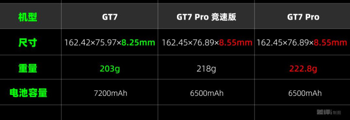 根据公开数据显示,最早发布真我GT7 Pro机身厚8.55mm,重223g;随后发布的真我GT7 Pro竞速版厚8.55mm,重218g;最新发布的真我GT7厚8.25mm,重203g,由此可见最新发布真我GT7更为轻薄。